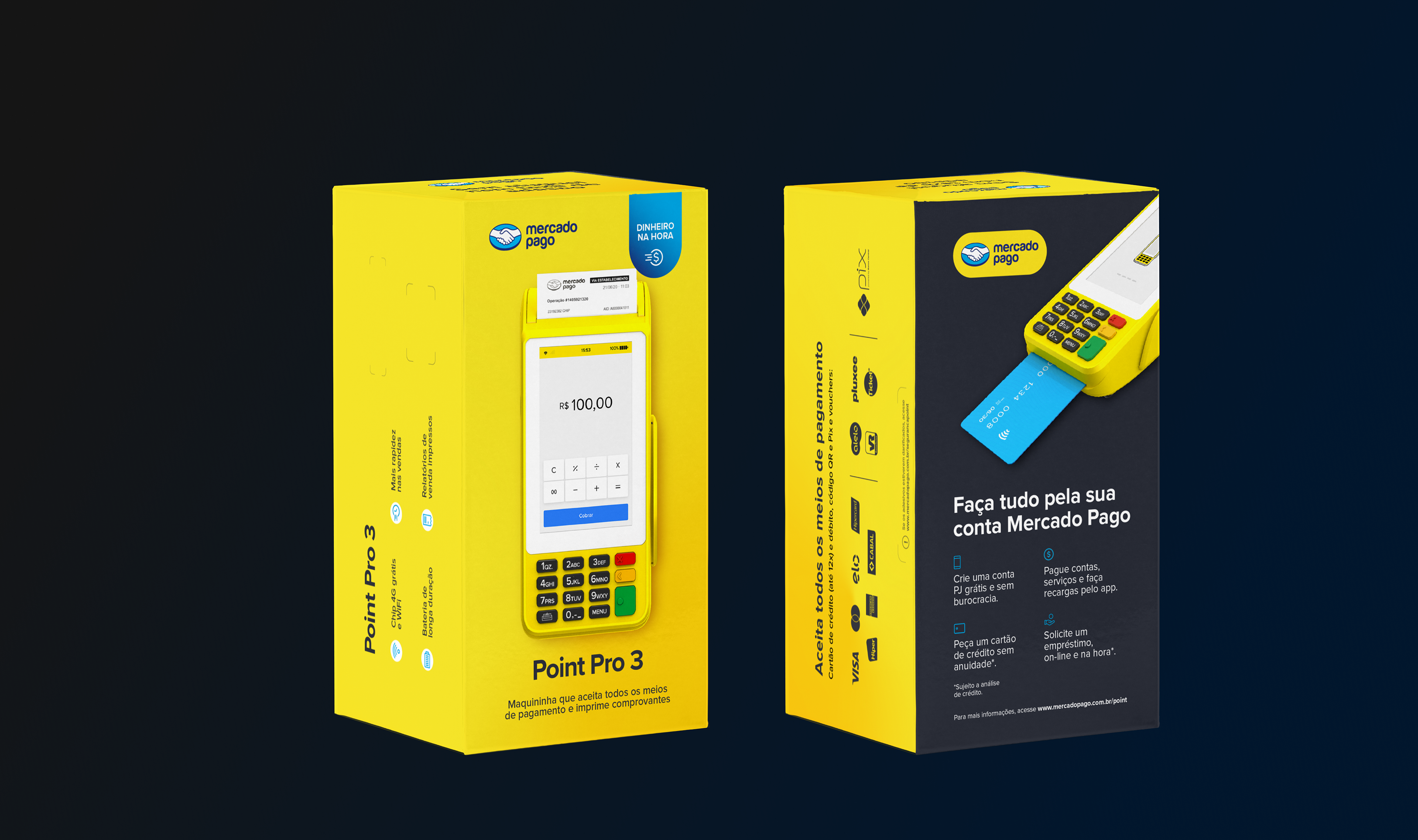 Durante meu trabalho no time de Unboxing do Mercado Pago, fui responsável por desenvolver as embalagens das maquininhas de pagamento, desde a aprovação da estrutura da caixa até a criação do design final, incluindo os materiais de apoio que completavam a experiência de unboxing. Todas as criações foram sempre feitas de acordo com as diretrizes de marca da empresa.