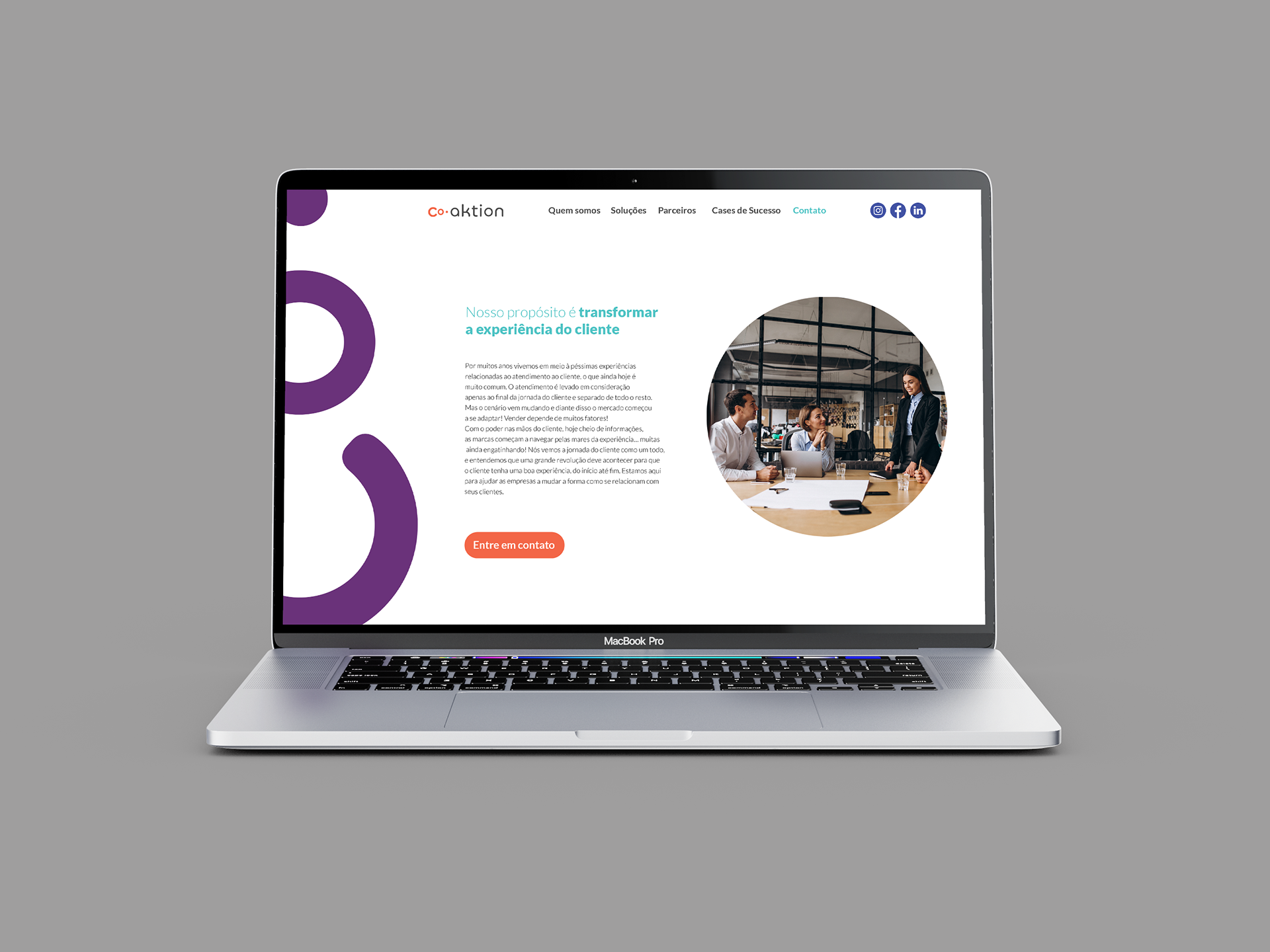 Seu propósito é "transformar a experiência do cliente", pensando nisso trouxe o lado humano para essa marca. O "Co." do logo vira uma pessoa, representando o cliente, o jeito humano de olhar para o outro e o cuidado ao lidar com pessoas.